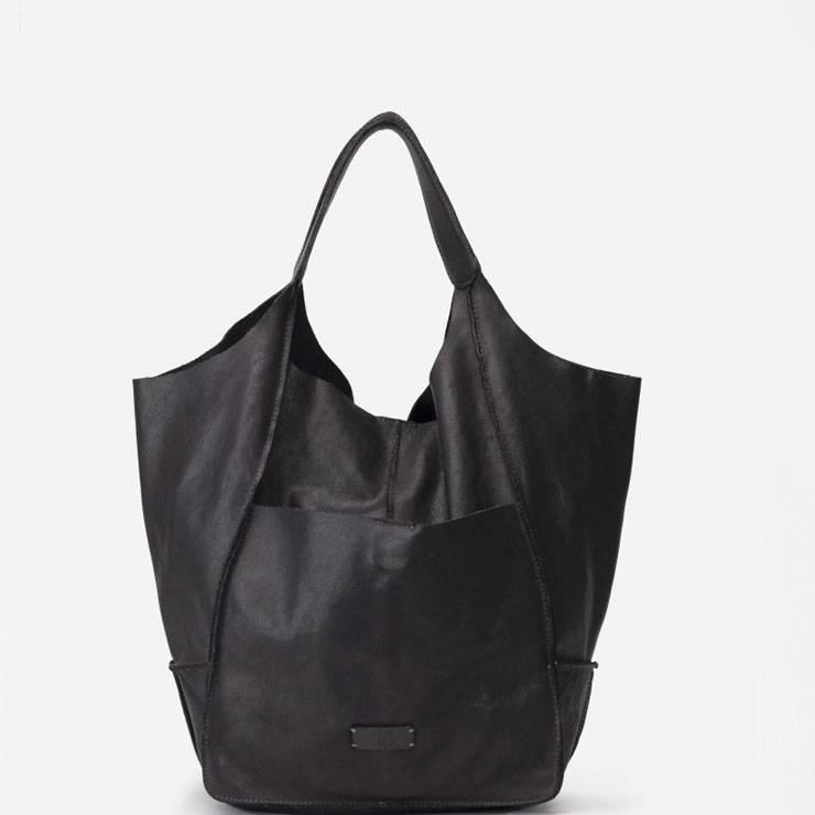Bolso tipo shopper de piel vacuna lavada, y de curtición vegetal. Cierre con botón. Medidas 28 x 36 x 18 cm