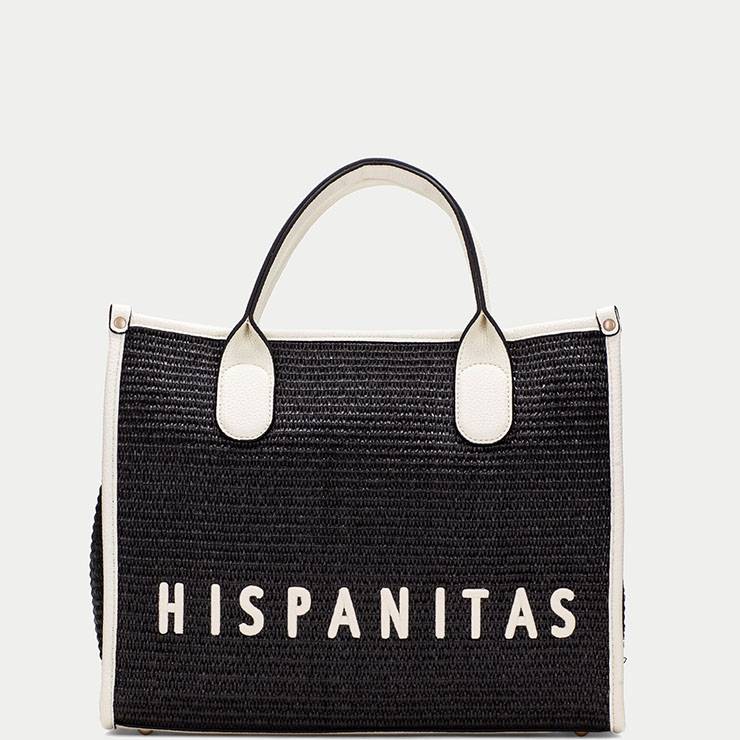 Bolso tipo Tote Bag cuadrada elaborado en PU. Logo “”Hispanitas”” en la parte frontal. Doble asa superior. Correa ajustable y extraíble.