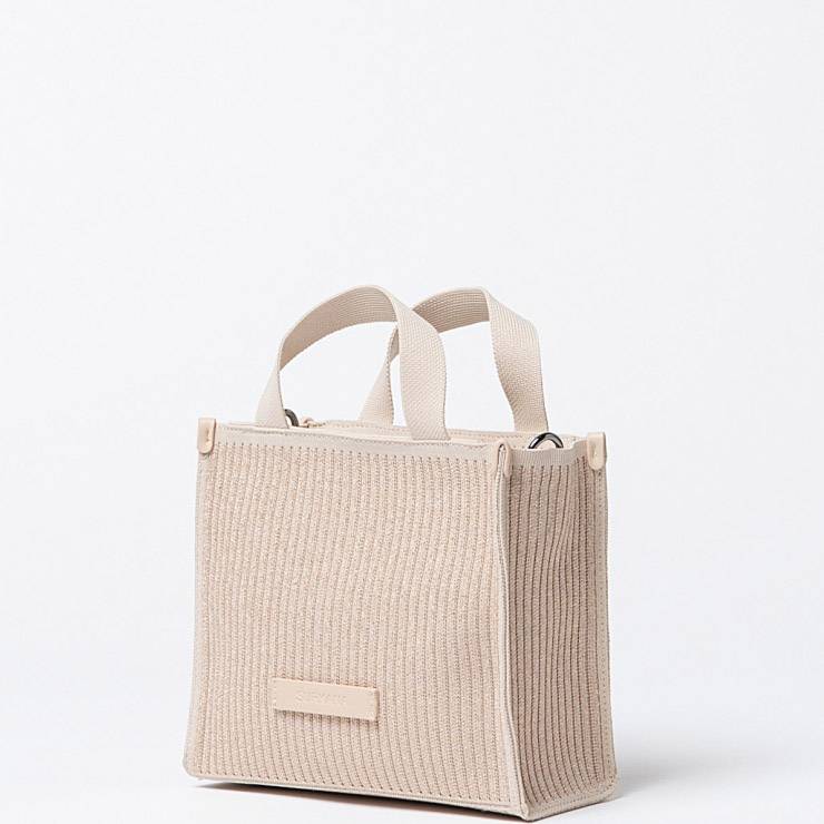Bolso tipo mini shopper de punto diseño estructurado y textura acanalada. Doble asa corta. Bandolera con asa larga, ajustable y extraíble. Cierre con cremallera. Medidas: 20x18x8 cm