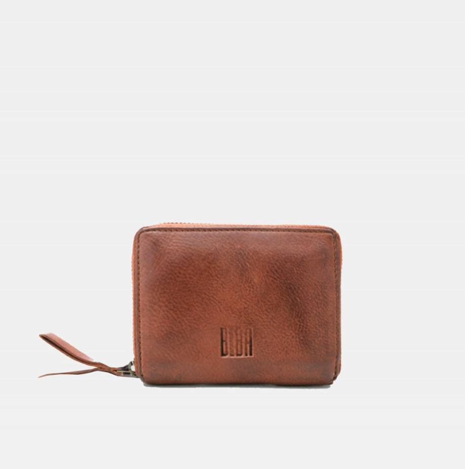 Billetero de la marca Biba Barcelona modelo BT12 Boston de color cuero. Billetero realizado en piel lavada. Cierre con cremallera. Tamaño 10 x 8 cm.