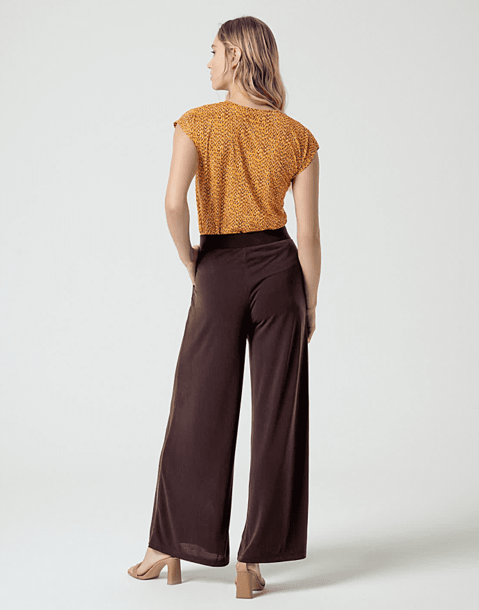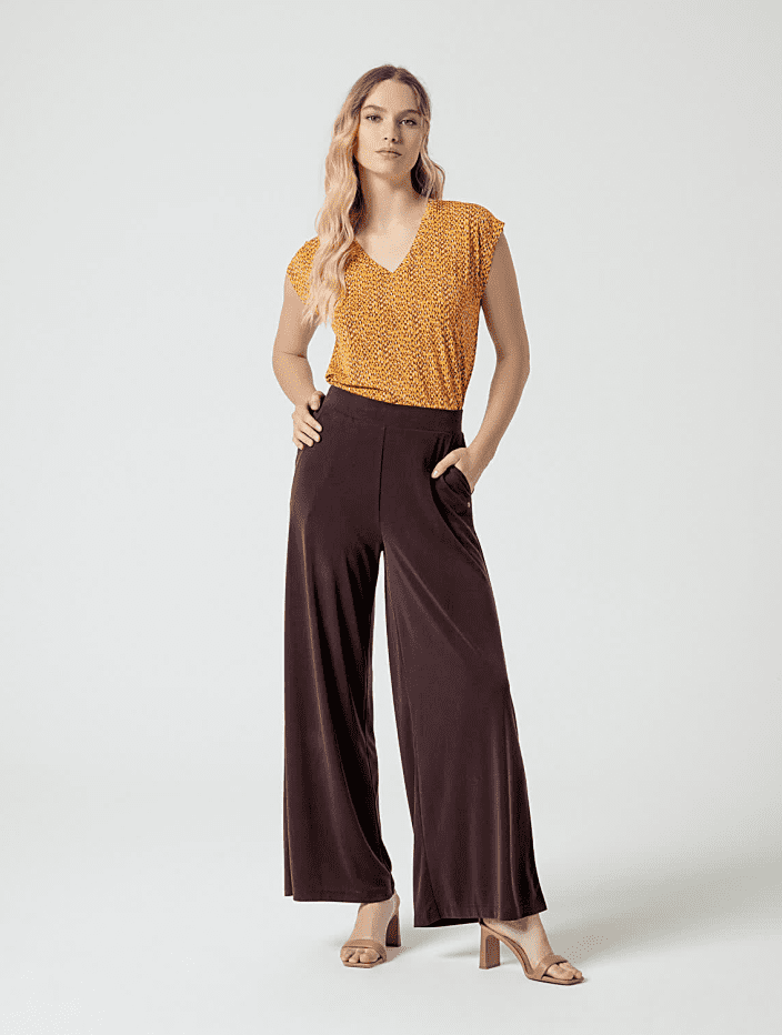 Pantalón largo ancho elaborado en viscosa. Goma en la cintura. Bolsillos delanteros. Tejido muy suave y elástico.