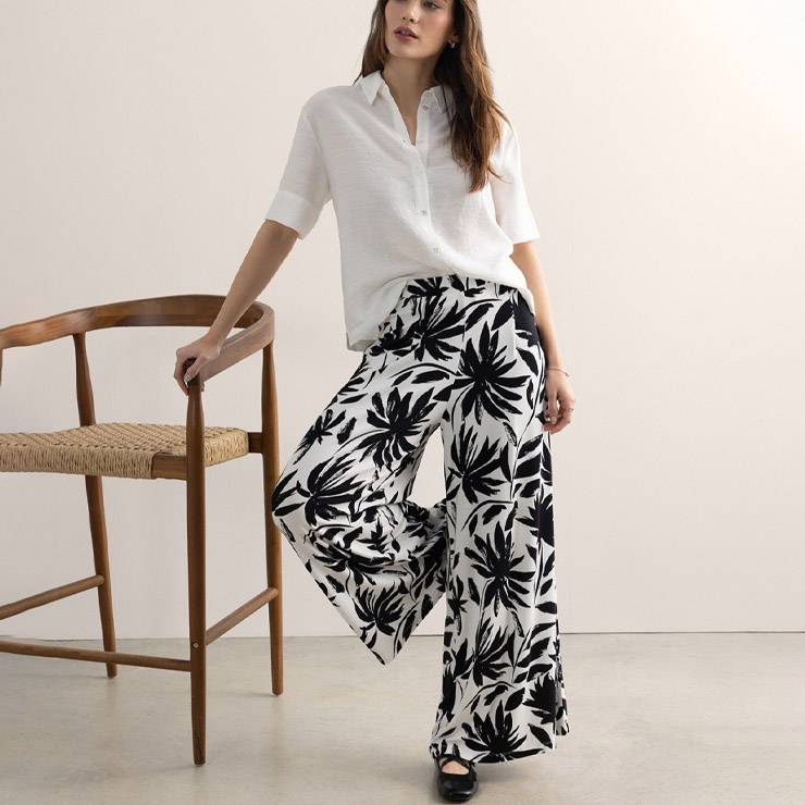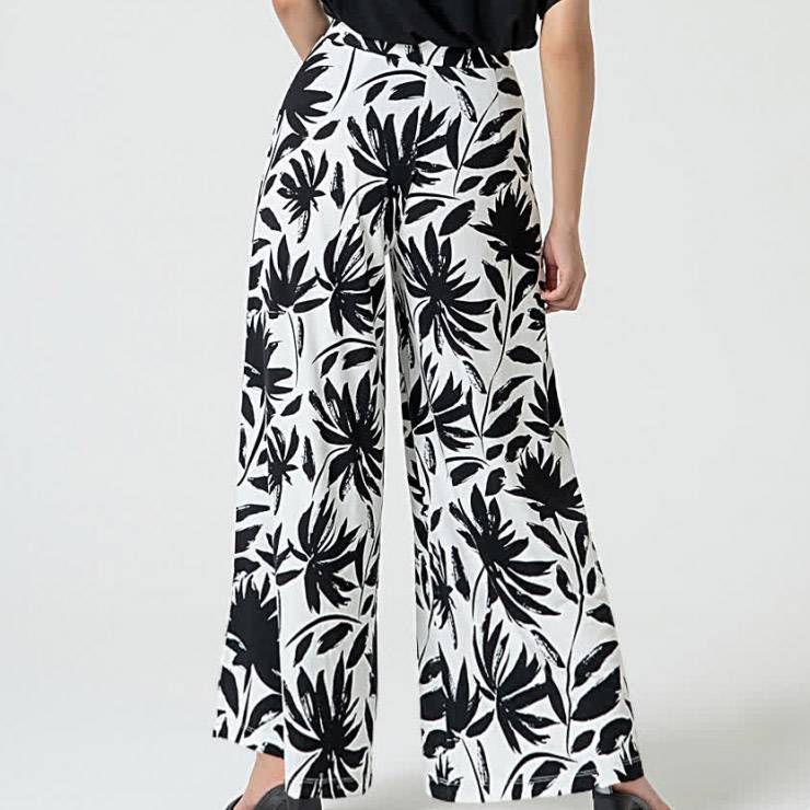 Pantalón ancho elaborado en viscosa elástica. Cintura elástica. Sin cierres. Tejido muy ligero.