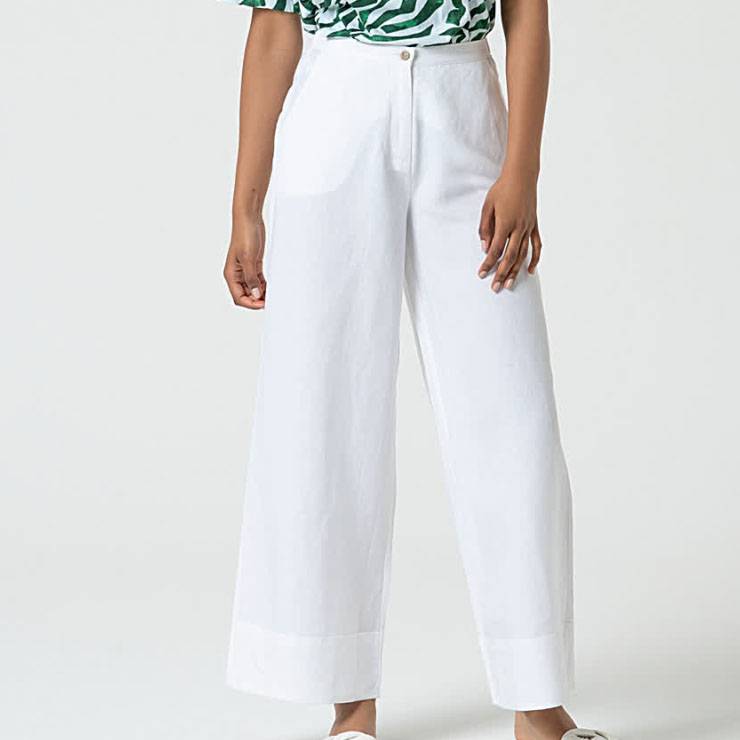 Pantalón ancho elaborado en viscosa y lino. Corte recto. Bolsillos delanteros y cierre frontal con cremallera. Detalle de vuelta en el bajo.