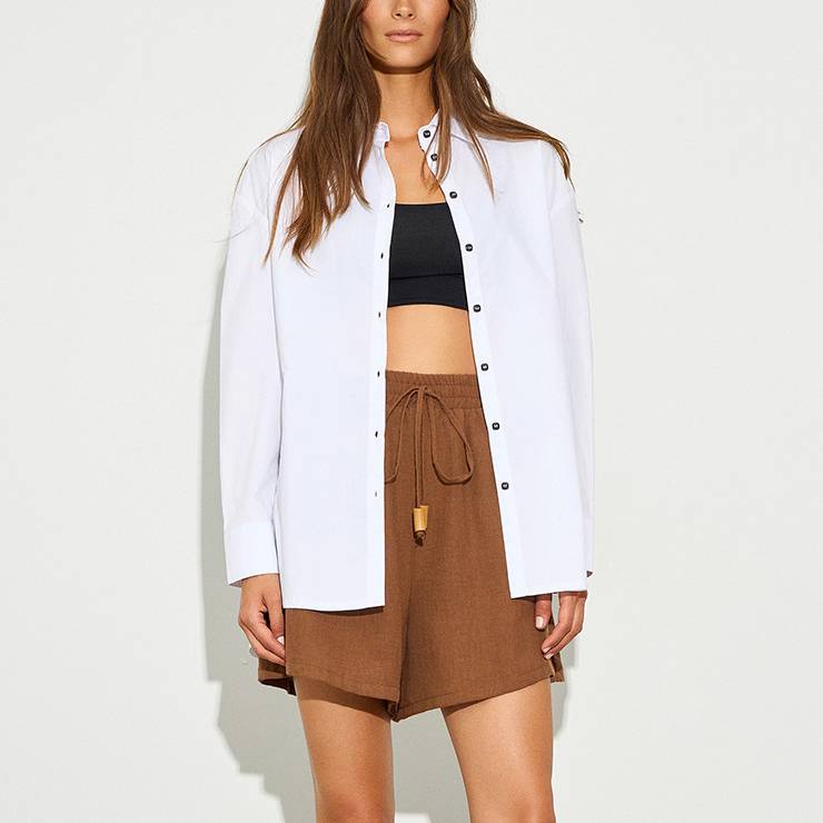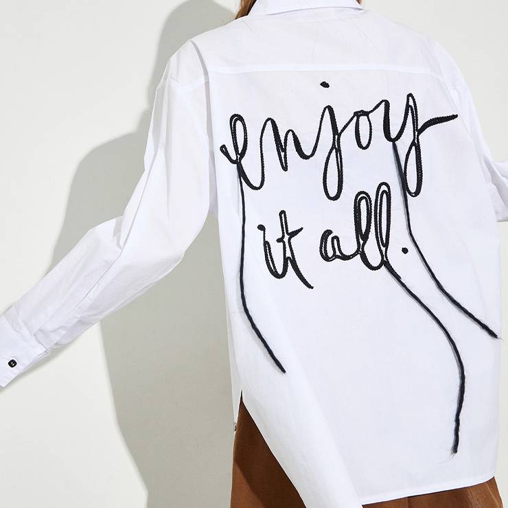 Camisa de algodón 100%. Manga larga. Detalles bordados en el cuello y en la espalda. Cierre de botones. Loose fit.