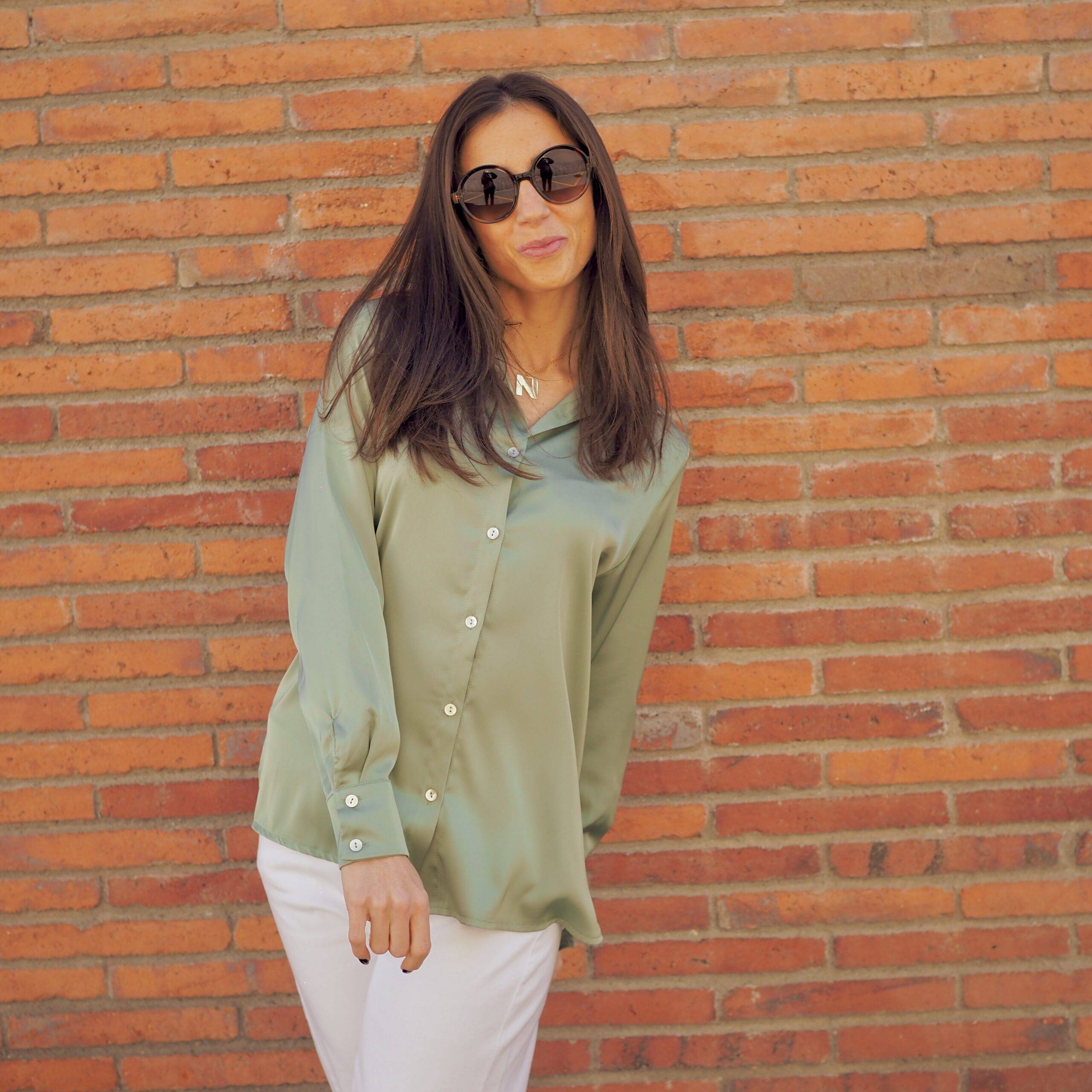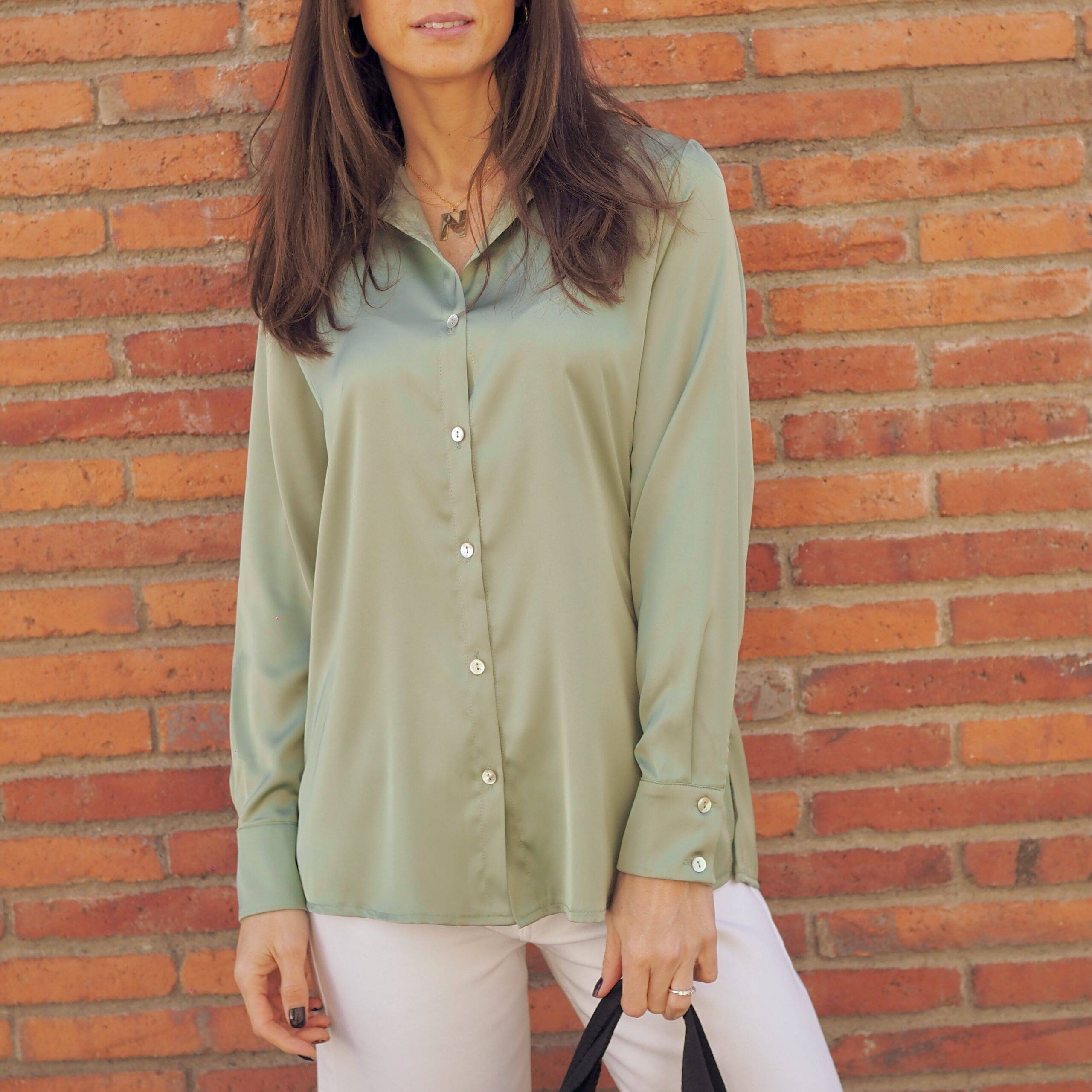 Camisa básica satinada de la marca Laia Laffaure en color verde.