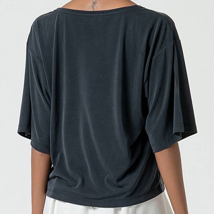 Camiseta oversize elaborada en viscosa. Manga francesa y escote pico. Tejido muy suave y elástico.