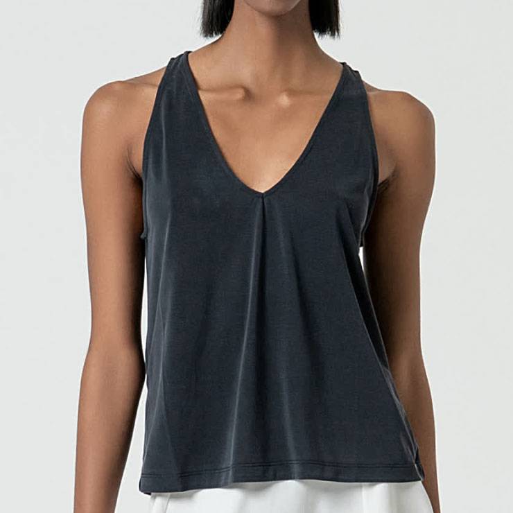 Camiseta tipo top elaborada en viscosa. Tirantes anchos. Escote en V. Tejido muy suave y elástico.