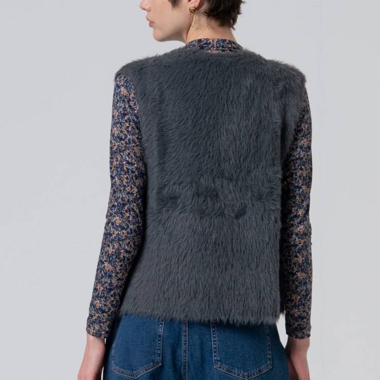 Chaleco en tejido suave y ligero con textura gustosa al tacto. Sin cierre con acabado efecto pelo.