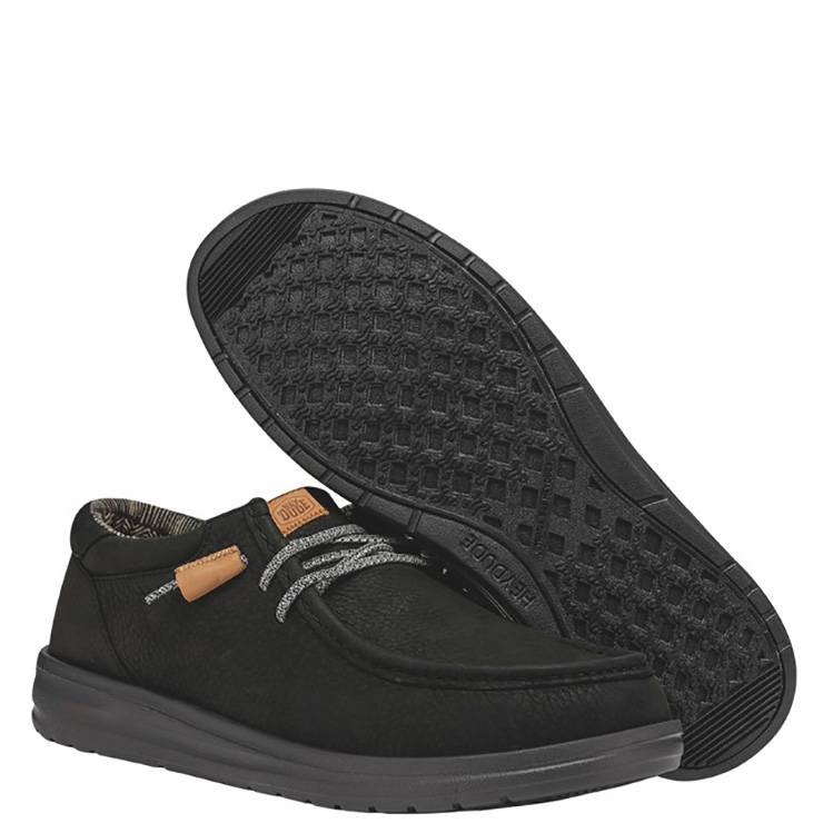 Mocasín de la marca HeyDude modelo Wally Grip Craft Leather en color negro.
