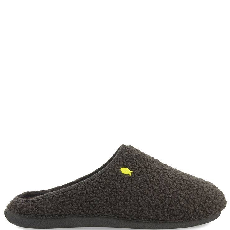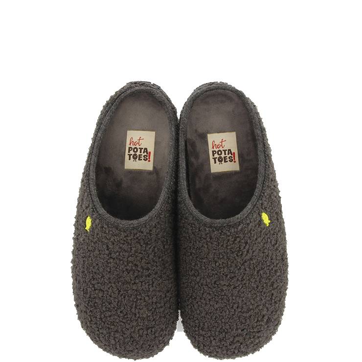 Zapatillas de pelo tipo borreguito. Plantilla extraíble fabricada con poliéster reciclado. Forro transpirable. Suela de goma natural con virutas de EVA reciclada.