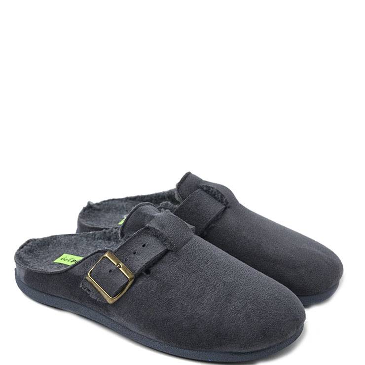 Zapatillas de casa tipo zueco de microfibra bamara, un tejido cálido, transpirable y suave al tacto. Plantilla poliuretano reciclado. Suela flexible 75% caucho natural con virutas de EVA reciclada.