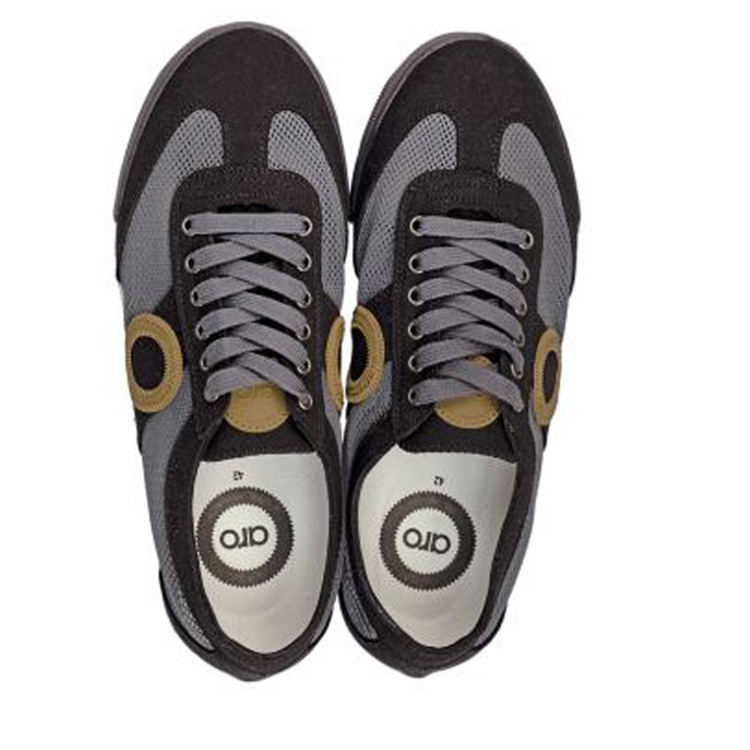Zapatillas de la marca Aro modelo Joaneta 3133 en color Darkness. Zapatillas elaboradas en malla combinada con microfibra en color negro y gris. Suela de goma natural 100% y cierre con cordones de algodón.