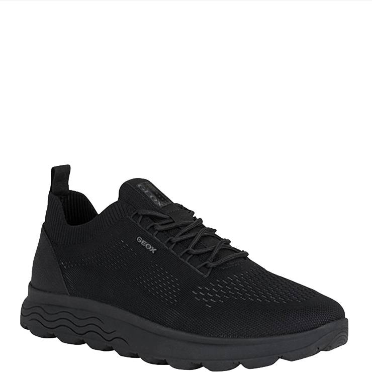 Zapatillas de la marca Geox, modelo Spherica en color negro. Zapatillas deportivas elaboradas en tejido con efecto tejido de punto. Modelo emblemático con grandes niveles de transpirabilidad, confort y amortiguación. Sistema zero-shock con esferas amortiguadoras. Cómoda suela de goma transpirable. Cierre con cordones. Plantilla desmontable.