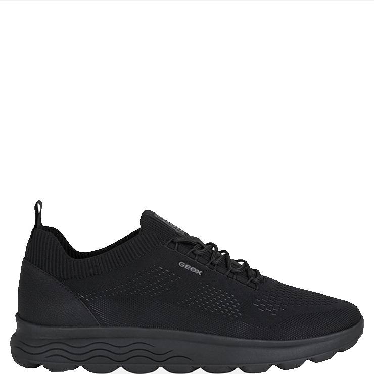 Zapatillas de la marca Geox, modelo Spherica en color negro. Zapatillas deportivas elaboradas en tejido con efecto tejido de punto. Modelo emblemático con grandes niveles de transpirabilidad, confort y amortiguación. Sistema zero-shock con esferas amortiguadoras. Cómoda suela de goma transpirable. Cierre con cordones. Plantilla desmontable.