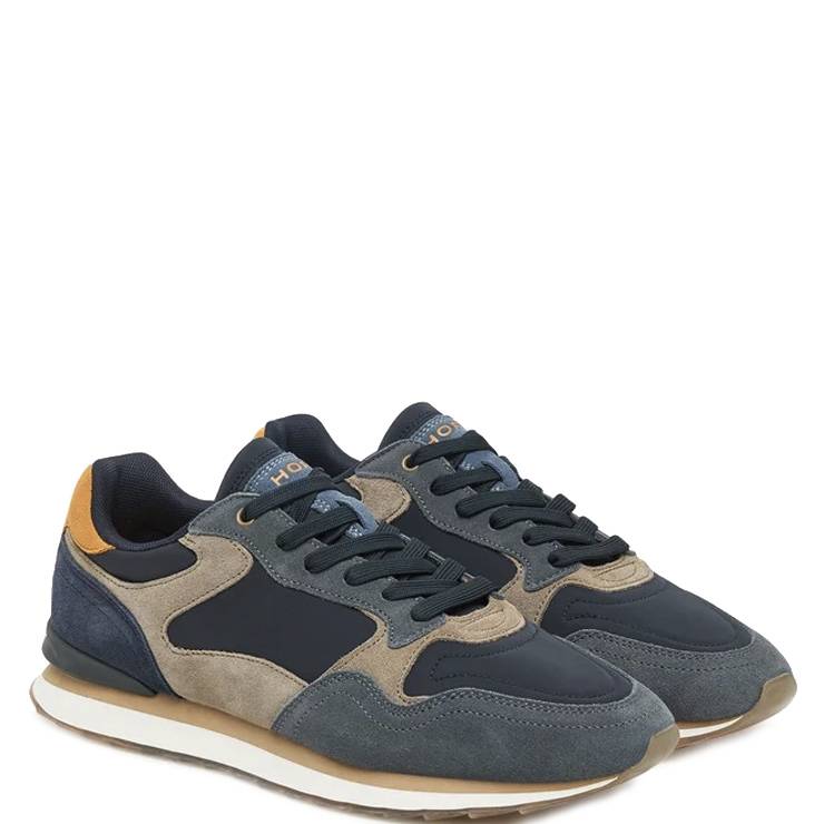 Zapatillas deportivas con cordones elaborada en una mezcla de cuero y nailon. Suela de goma antideslizante y duradera. Suela ergonómica y plantilla extraíble de memory foam. Media suela de EVA de 3 cm de altura.