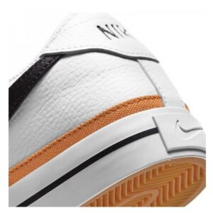 Zapatillas de la marca Nike, modelo Court Legacy en color blanco. Zapatillas deportivas en piel blanca, impecable y duradera. Costuras intrincadas tipo tenis. Ribete de lona en la mediasuela. Suela exterior de goma y logo en el lateral de color negro.