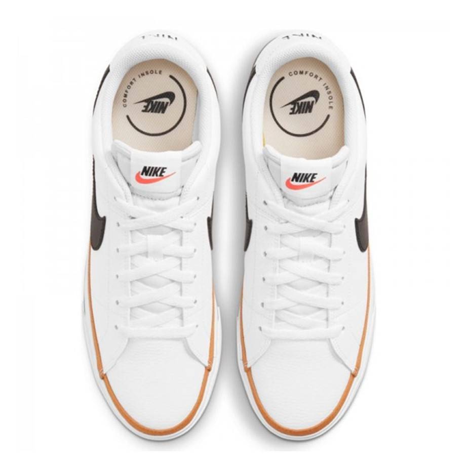 Zapatillas de la marca Nike, modelo Court Legacy en color blanco. Zapatillas deportivas en piel blanca, impecable y duradera. Costuras intrincadas tipo tenis. Ribete de lona en la mediasuela. Suela exterior de goma y logo en el lateral de color negro.