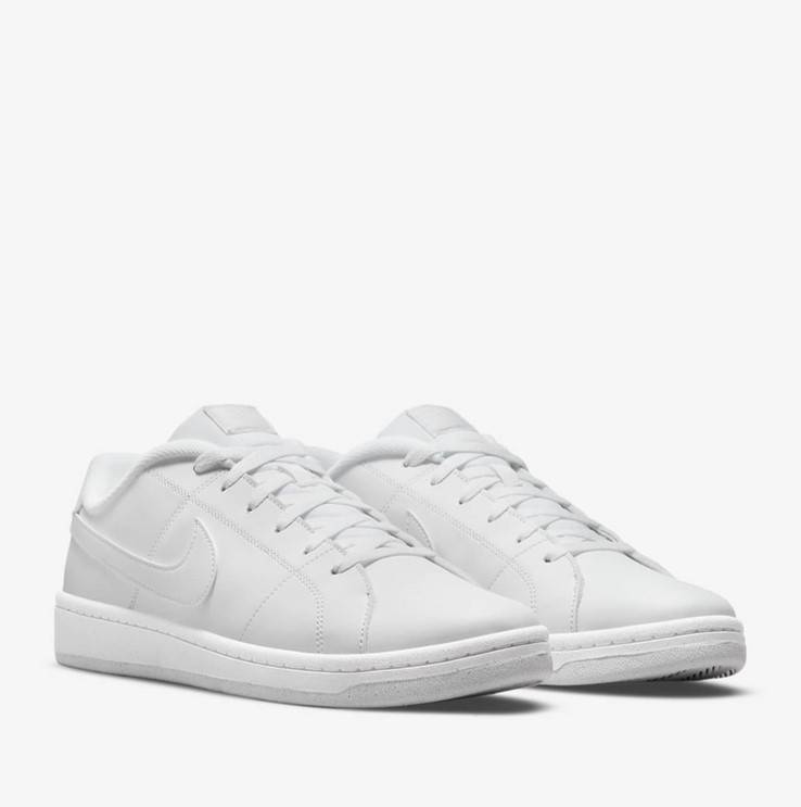 Zapatillas de la marca Nike, modelo Court Royale 2 CQ9246 en color blanco. Zapatillas deportivas de piel de color blanco, cuello acolchado y costura clásica de larga durabilidad. Suela de espiga para mayor tracción. Logotipo en blanco en el lateral.