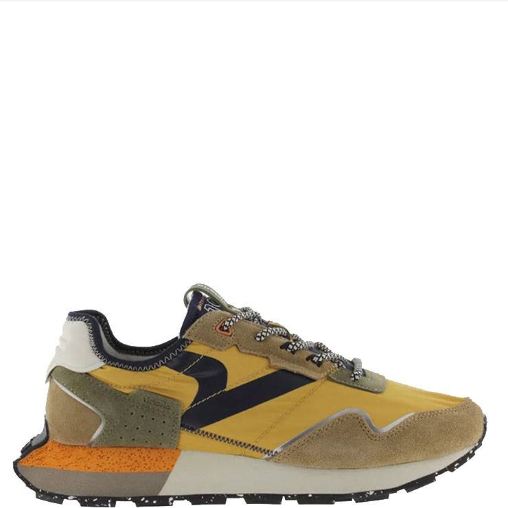 Zapatillas deportivas elaboradas en nailon y serraje. V retro en el lateral en contraste. Cierre mediante cordones redondos. Suela de goma EVA con detalle de piedra pomez. Plantilla memory foam.