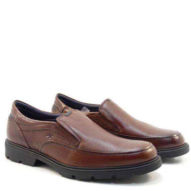 Zapatos de la marca Fluchos modelo Fredy F1606 en color marrón. Zapatos elaborados en piel grabada. Pequeños elásticos en los laterales. Suela de goma termoplástica. Plantilla transpirable y extraíble.