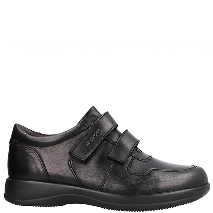 Zapato deportivo elaborado en piel. Cierre con doble velcro para mayor ajuste. Plantilla con tecnología Blusoft que consiste en una almohadilla de gel en el talón que amortigua. Plantilla extraíble.