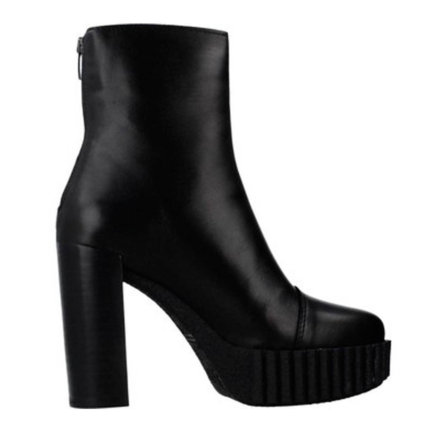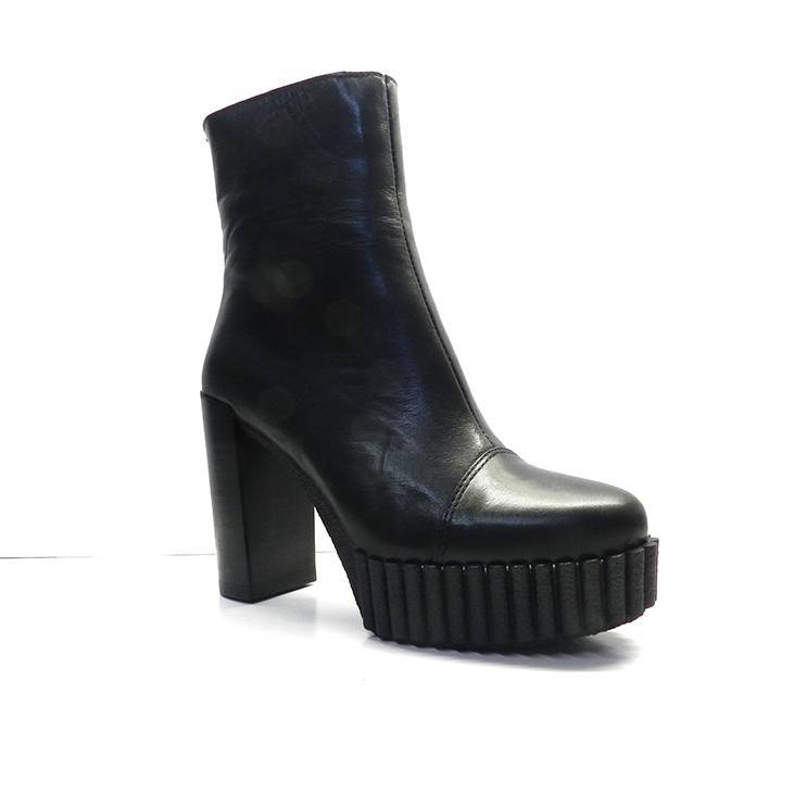 Botín de la marca Alpe modelo 4547 en color negro. Botín de tacón elaborado en napa con puntera. Plataforma delantera de 3 cm y tacón de 10 cm. Suela de goma con detalle ondulado.