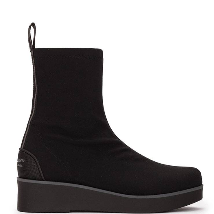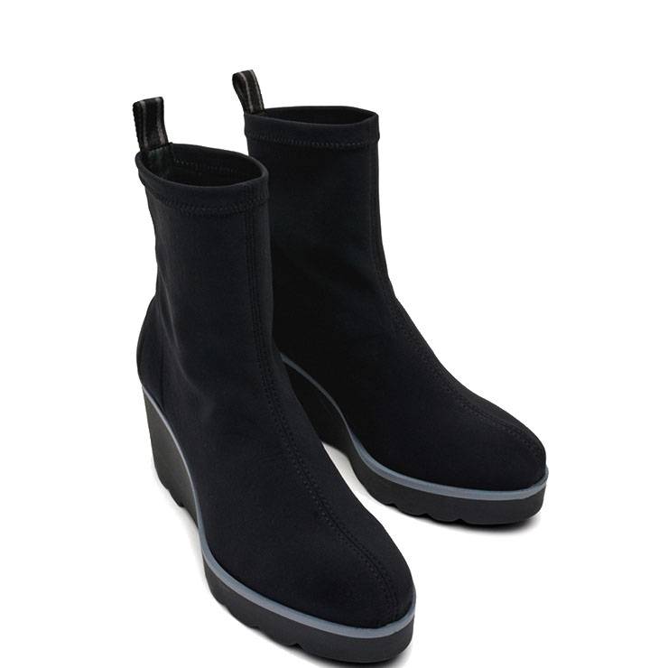 Botín de estilo calcetín de tejido elástico efecto ante. Suela de caucho de 2 cm con cuña de 4 cm.