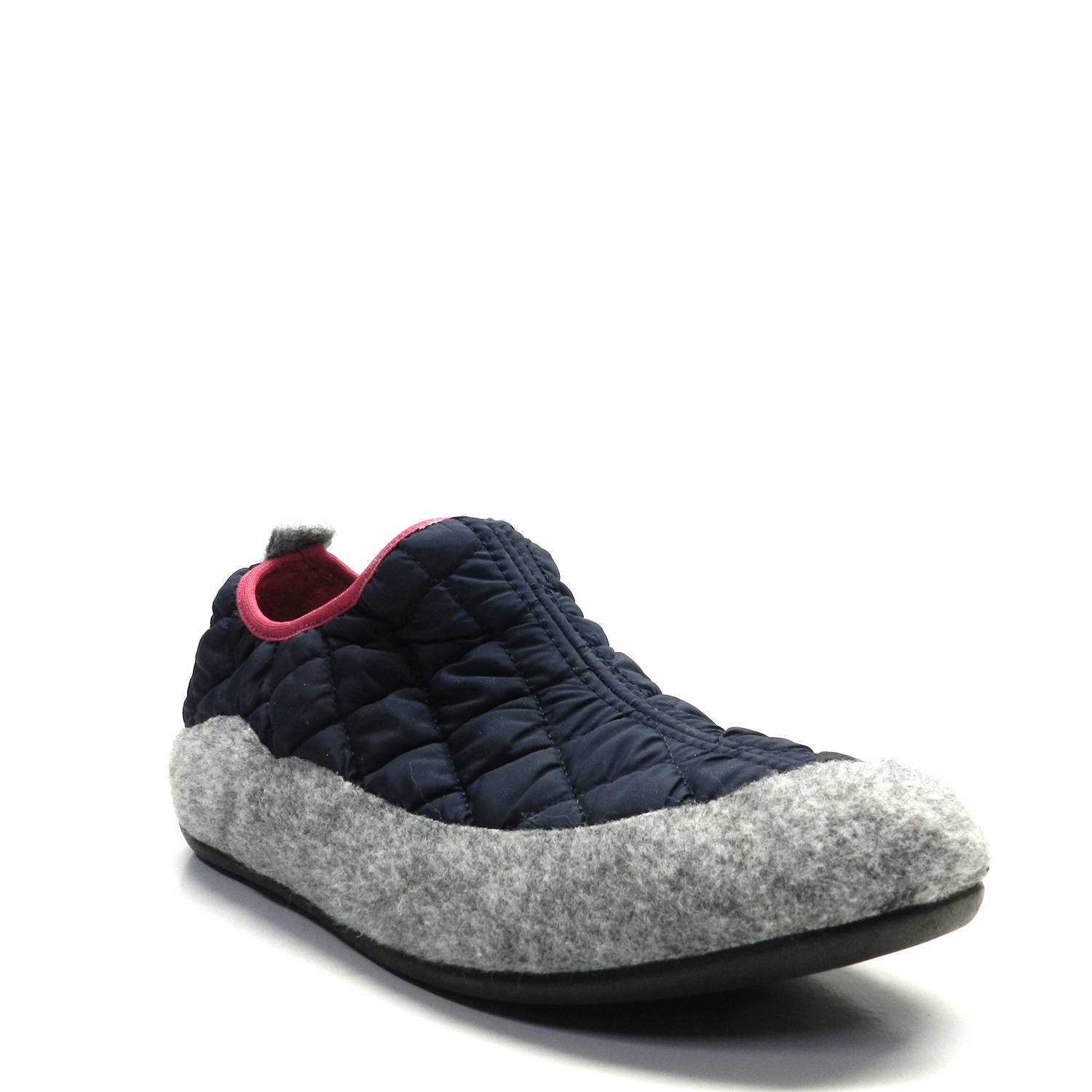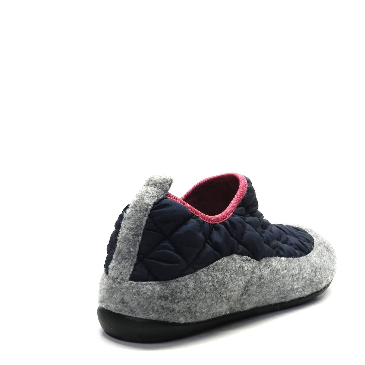 Zapatillas de casa mujer en tejido acolchado de color azul marino, con parte inferior de felpa gris. Cerradas y súper cómodas para estar por casa.