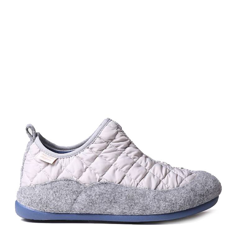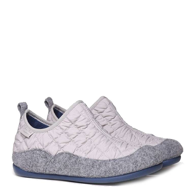 Zapatillas de casa de la marca Toni Pons modelo Mare-Um en color gris. Zapatilla de casa cerrada elaborada en combinación de fieltro y tejido acolchado. Suela plana de goma incluye una pequeña cuña de 1,5 cm.