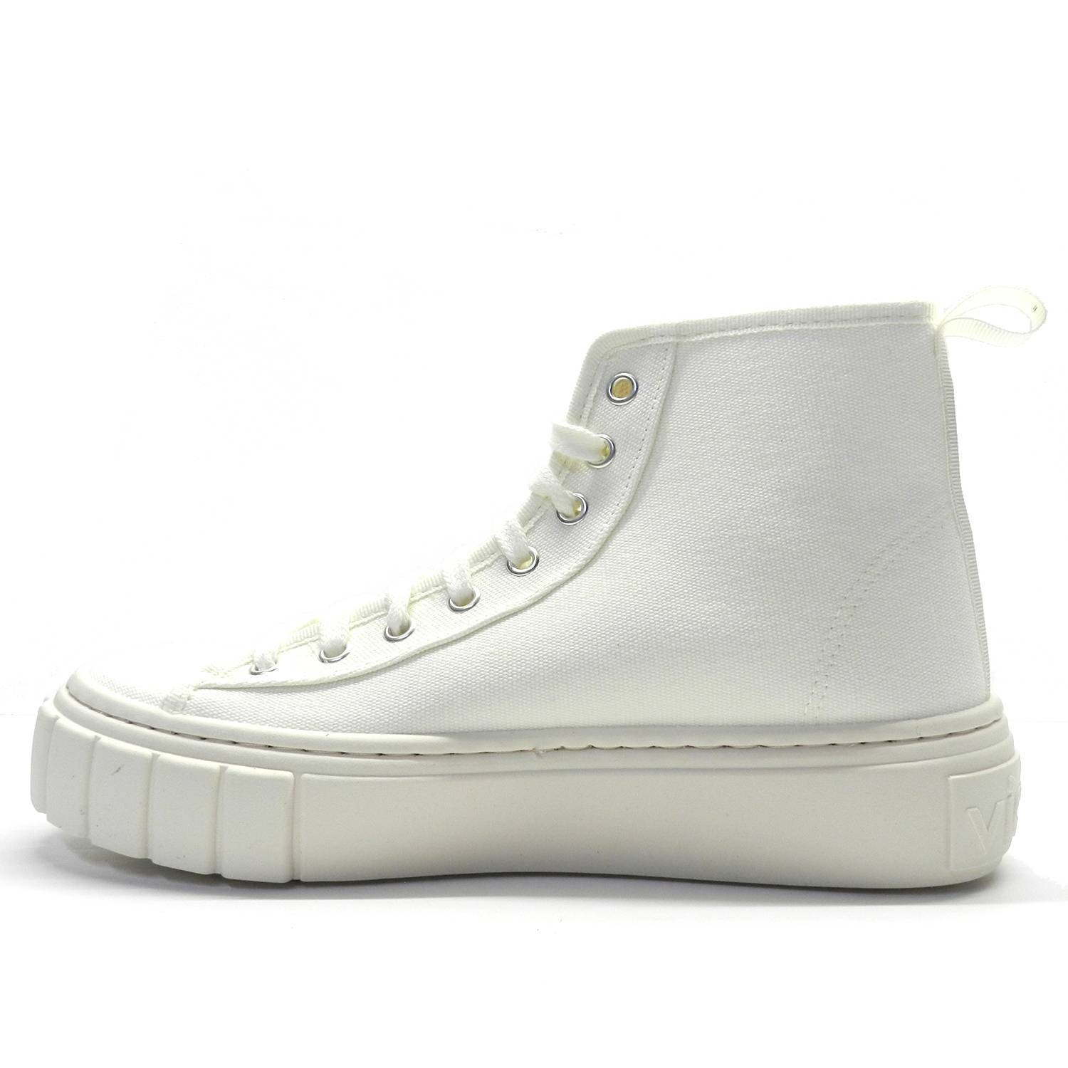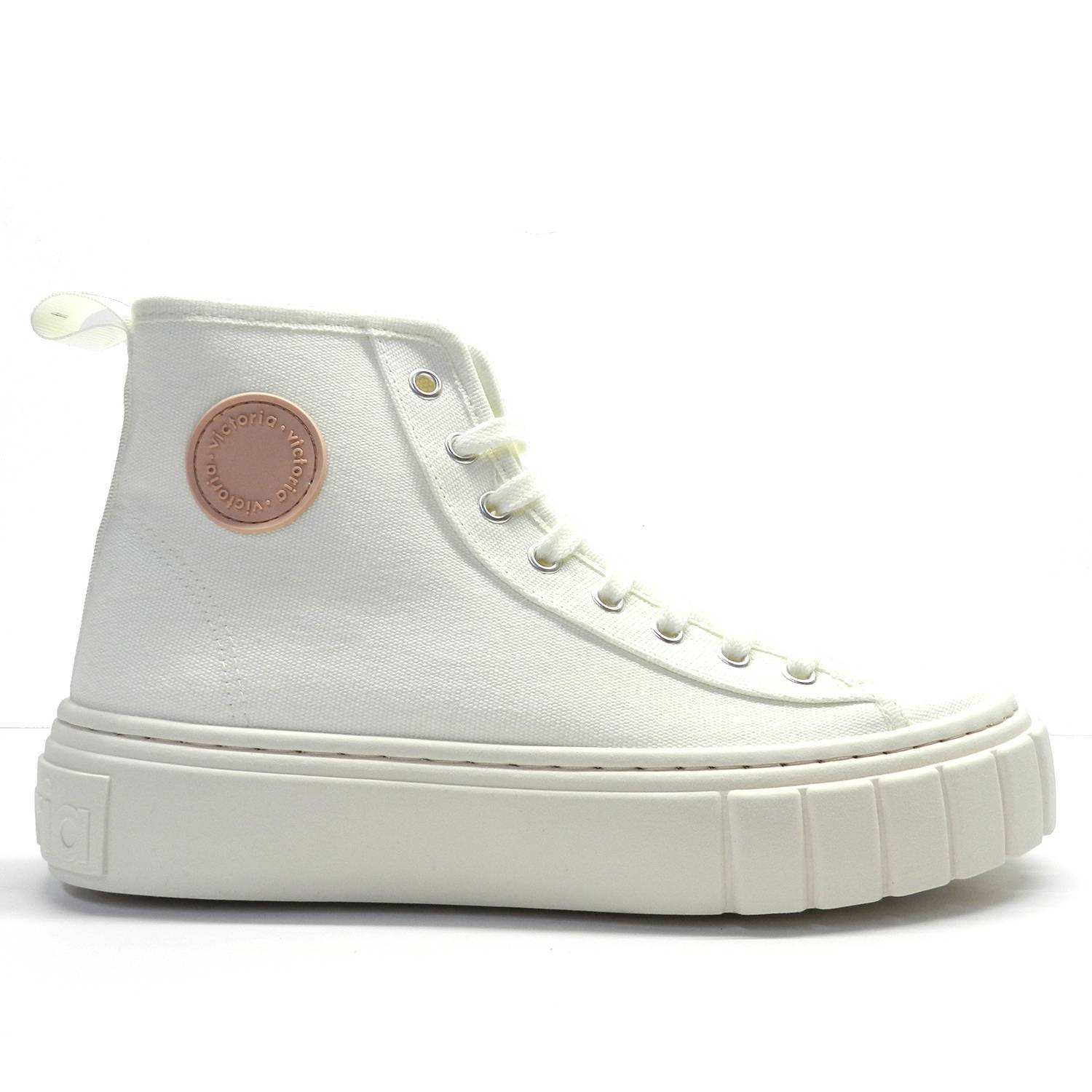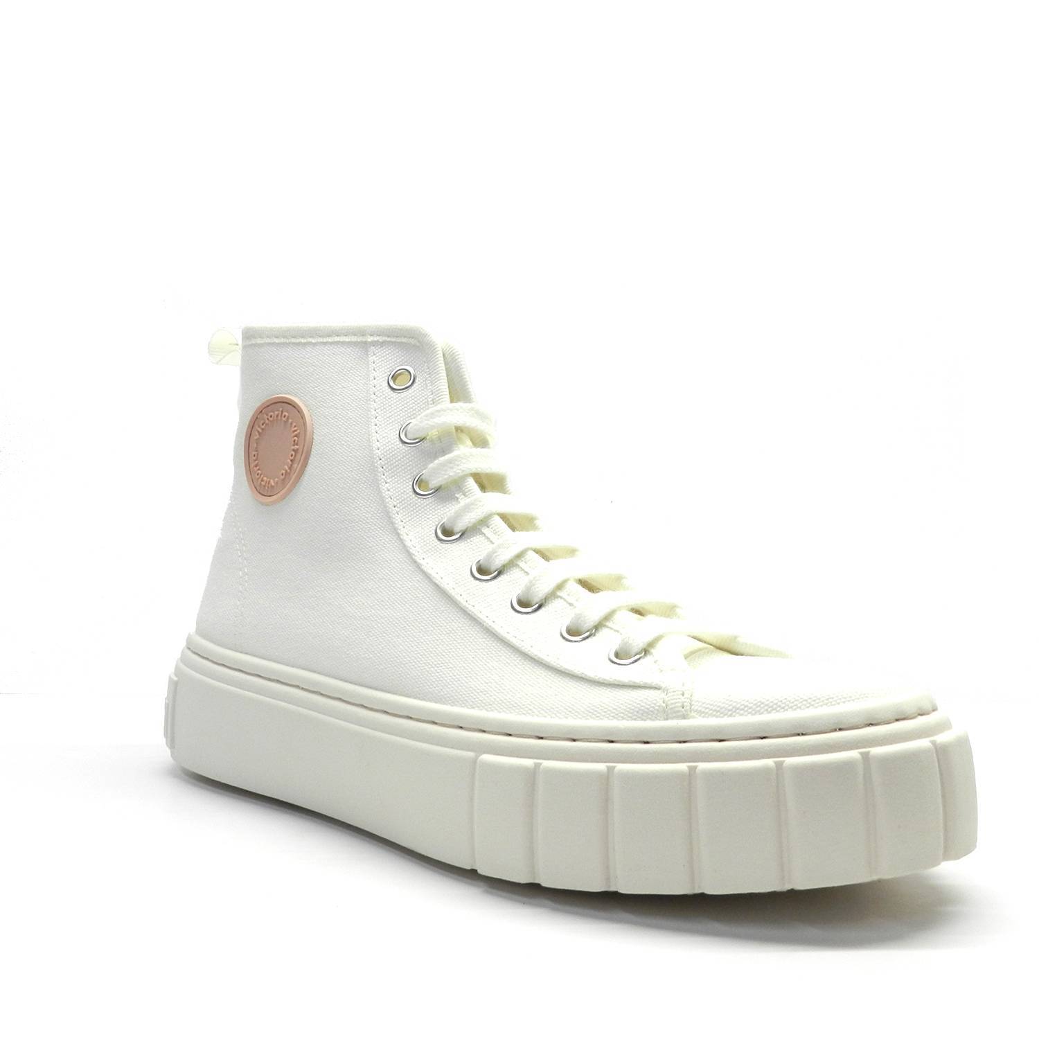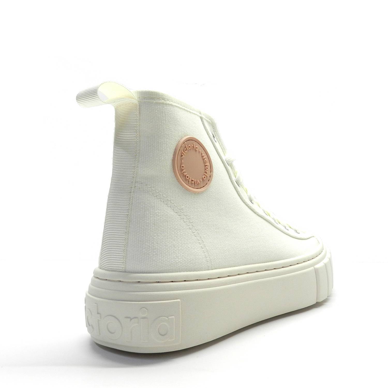 Botín de lona de la marca Victoria, modelo Abril. Estas deportivas tienen suela gruesa y están fabricadas en lona de algodón orgánico 100%. Cierre mediante cordones y tirador trasero.
