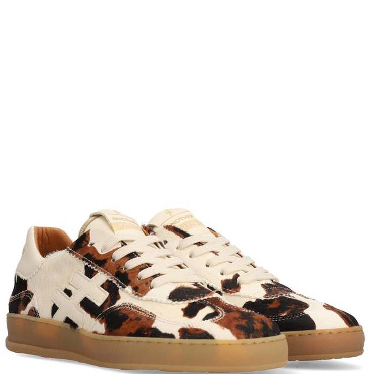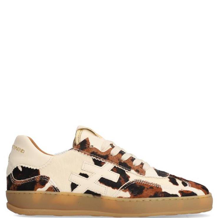 Zapatillas deportivas elaboradas en piel con pelo sintético en estampado de vaca. Suela de goma de 2 cm de altura. Plantilla de microfibra transpirable extraíble.