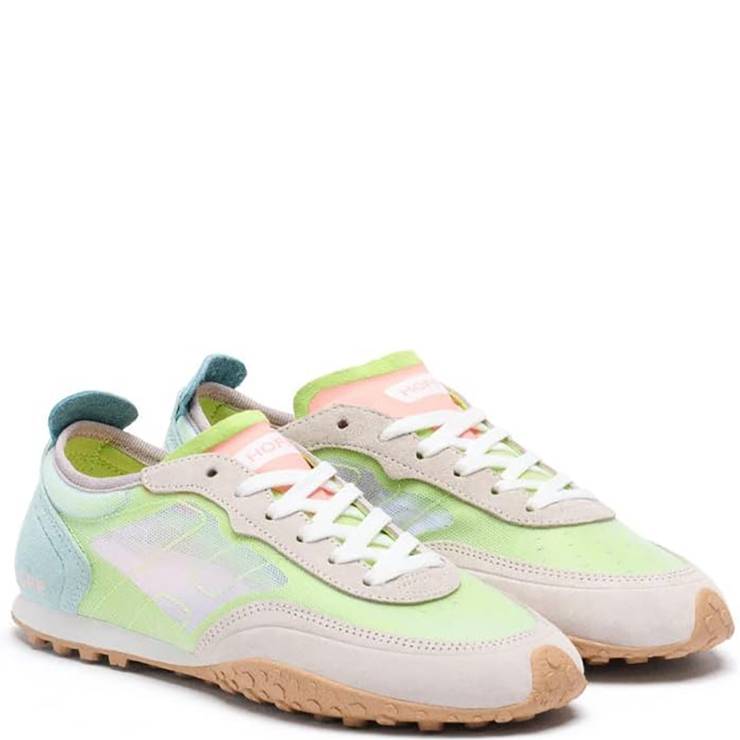 Zapatillas deportivas de mujer con cierre con cordones. Confeccionadas con combinación de materiales y colores. Rejilla transparente en los laterales. Detalle de suela de tacos engomada.