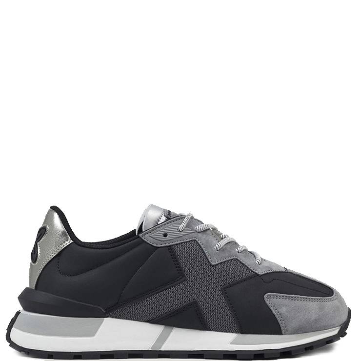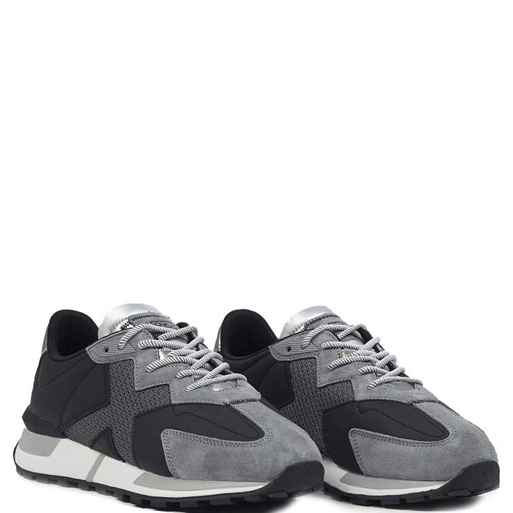 Zapatillas deportivas con cordones con combinación de diferentes materiales. Logo de la marca en el lateral.