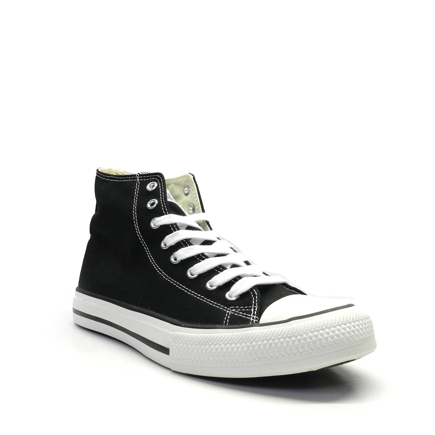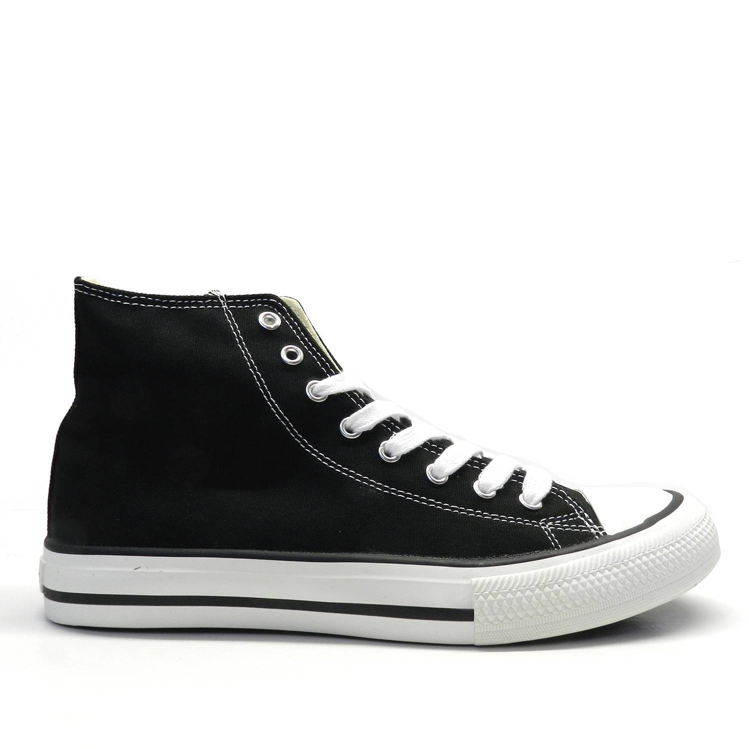 Zapatillas de lona abotinada cierre con cordones y plataforma en color blanco con detalle de la clásica línea negro.