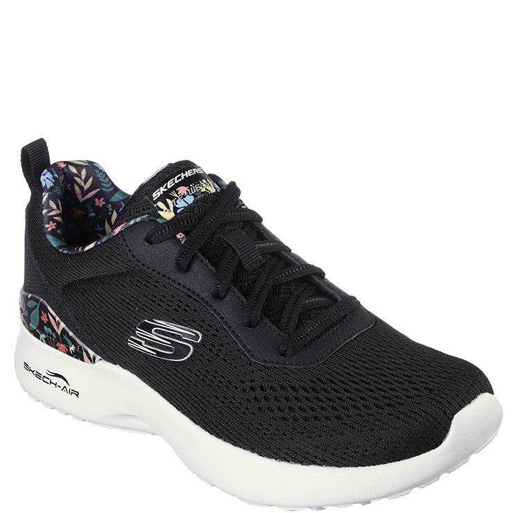 Zapatillas deportivas elaboradas en malla y tejido sintéticos con ribete de estampado floral. Plantilla Skechers Memory Foam . Media suela con cámara de aire Skech-Air. Suela de goma flexible con tracción.
