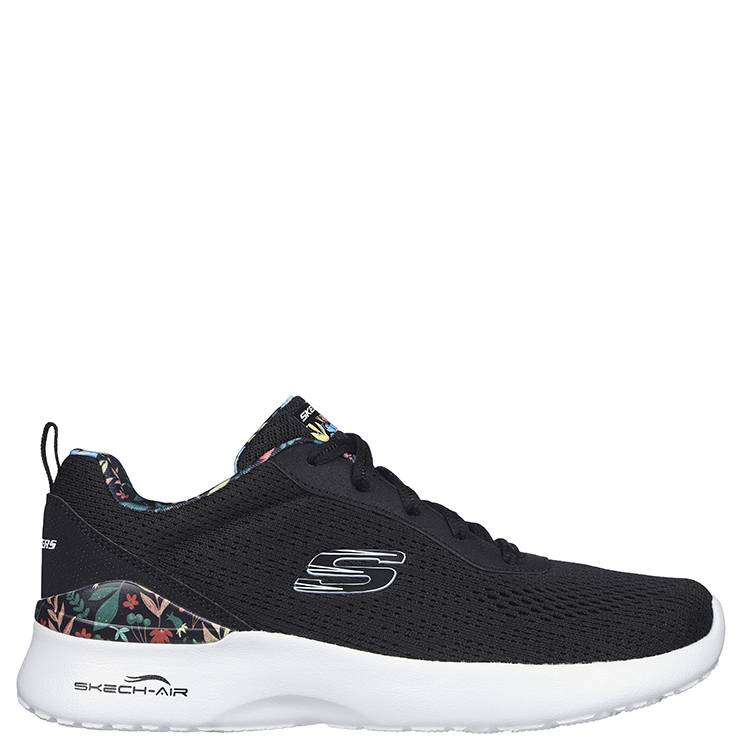 Zapatillas deportivas elaboradas en malla y tejido sintéticos con ribete de estampado floral. Plantilla Skechers Memory Foam . Media suela con cámara de aire Skech-Air. Suela de goma flexible con tracción.