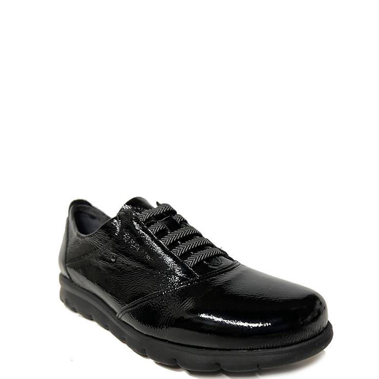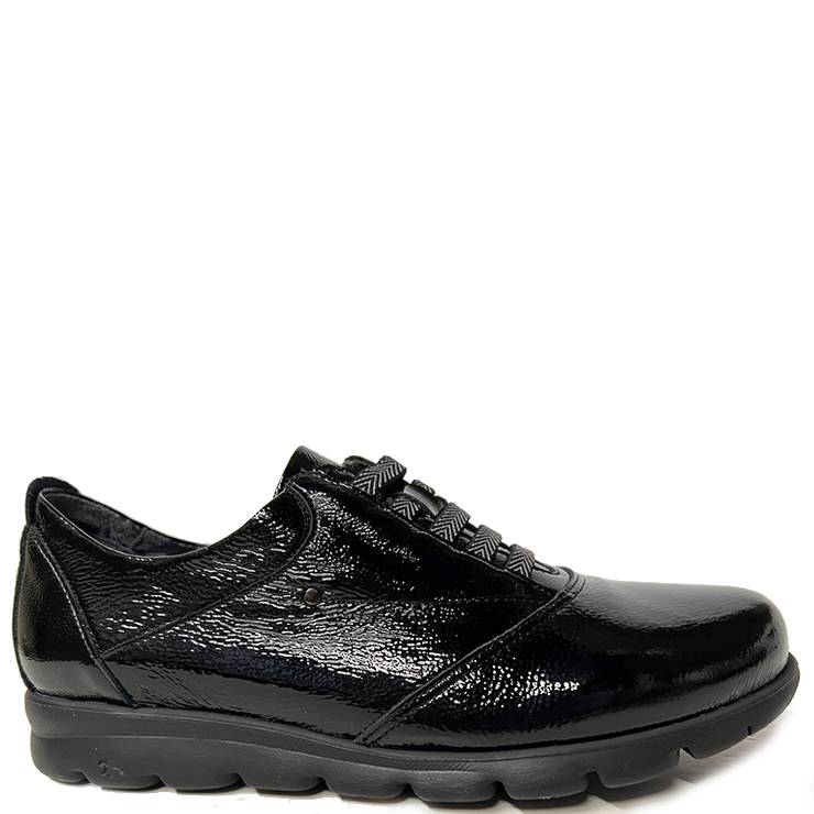 Zapatos fabricados en charol con cordones elásticos y suela dentada. Un básico que aporta comodidad y confort para el día a día.