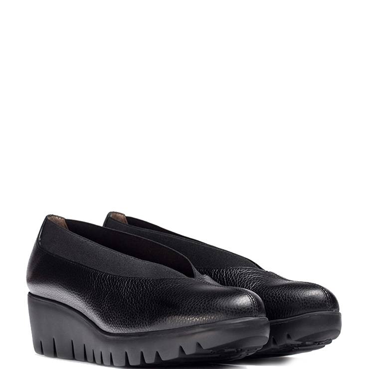 Zapato elaborado en piel texturizada. Elástico en la zona del escote. Suela de goma EVA expandida de 4,5 cm de altura con tecnología WondersFly™. Plantilla interior de MemoryGel.