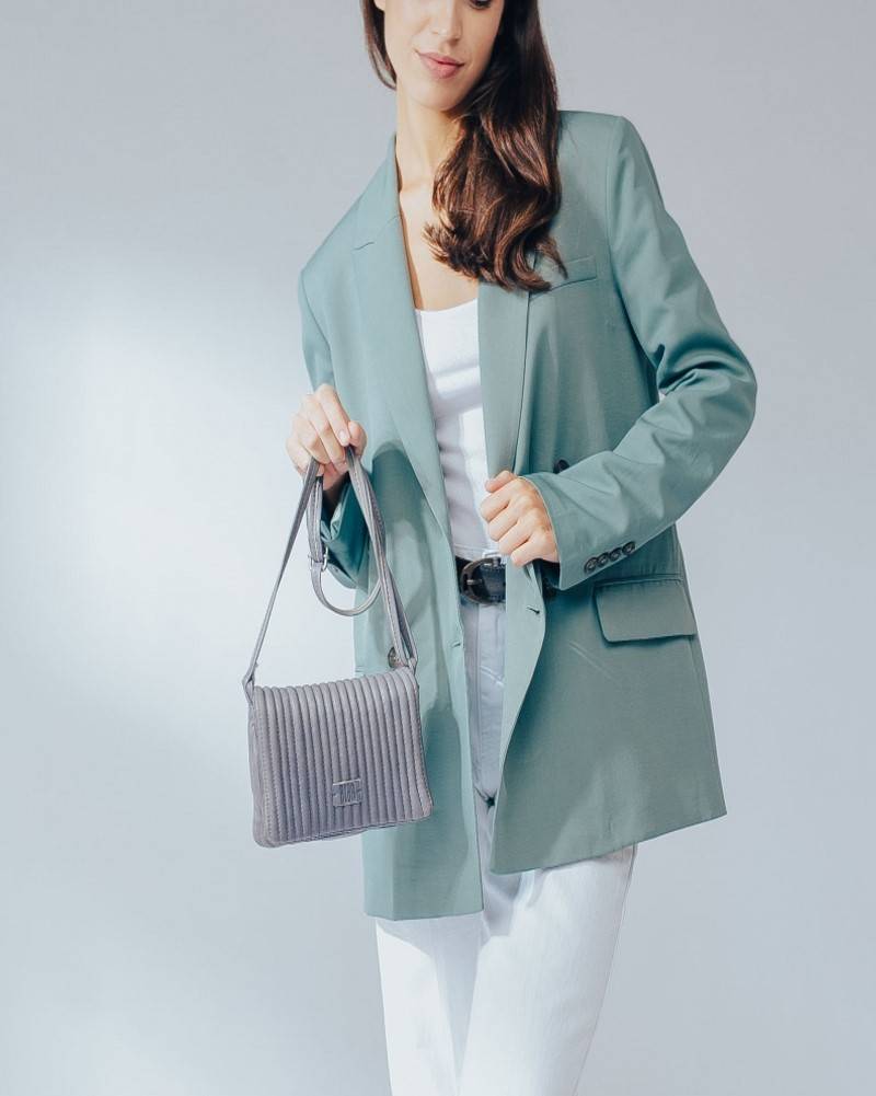 Mini bolso cross bag de piel de ovino y efecto acolchado. Solapa y cierre con botón.