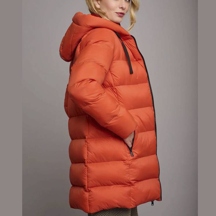 Abrigo de la marca Rino Pelle, modelo Nadira en color naranja.