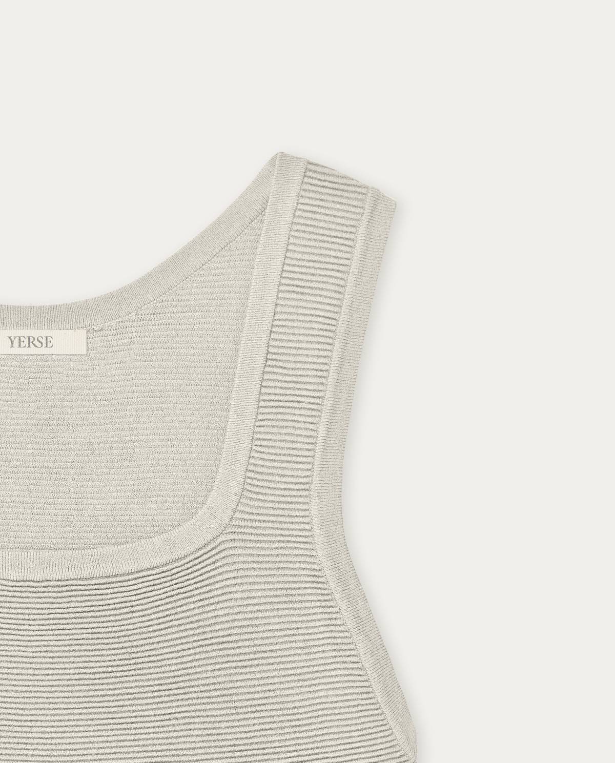 Camiseta tipo top corto de punto. Escote cuadrado. Sin mangas. Tejido de punto. Acabados en canalé. Fitting ajustado al cuerpo.