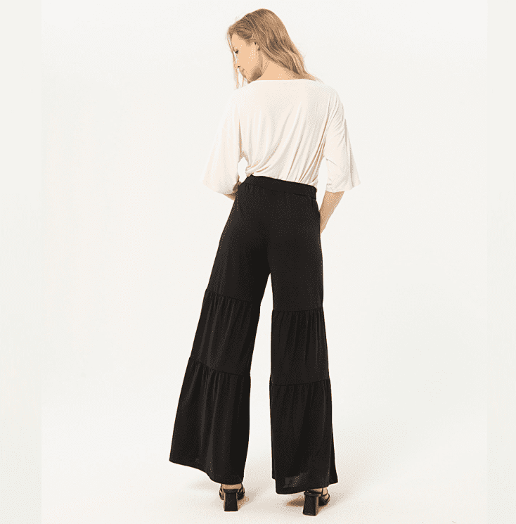 Pantalón largo elaborado en modal, un tejido suave y elástico. Detalle de fruncidos efecto volatne. Sin cierres, cintura elástica.
