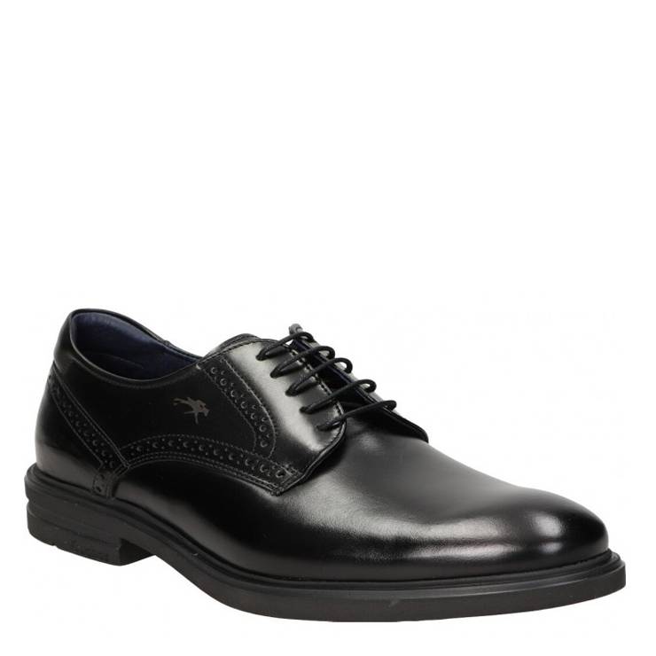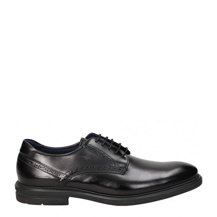 Zapato de la marca Fluchos modelo Belgas F630 en color negro. Zapato tipo blucher en napa lisa con detalle troquelado en la pala y en los laterales. Cierre con cordones. Suela de goma EVA. Plantilla extraíble.