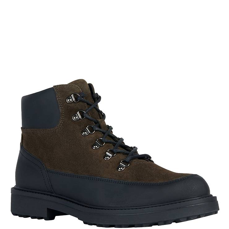 Bota tipo montaña elaborada en gamuza engrasada. Suela ultra adherente. Transpirabilidad de la superficie y máximo confort garantizados por el sistema patentados Geox. Plantilla extraíble práctica e higiénica.