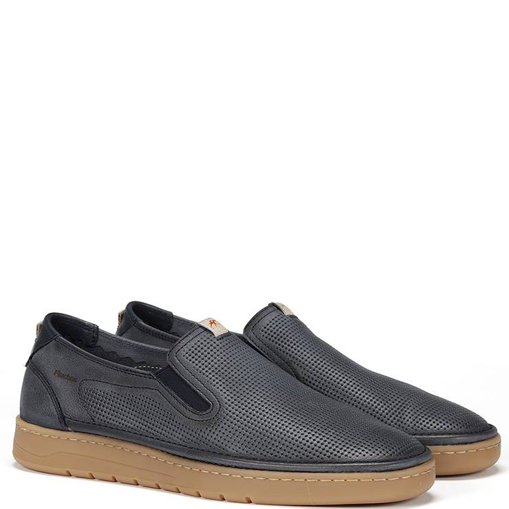 Mocasín slip-on elaborado en vegabuck con picado. Elásticos a los laterales. Suela de goma de 2 cm de grosor. Plantilla extraíble.