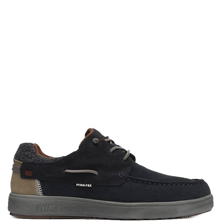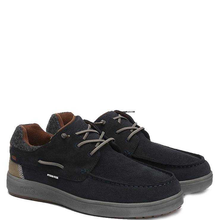 Náutico elaborado en serraje hidrofugado con talonera de piel. Forro textil con membrana Pitas-Tex. Suela Coast de goma EVA ultralight antideslizante.