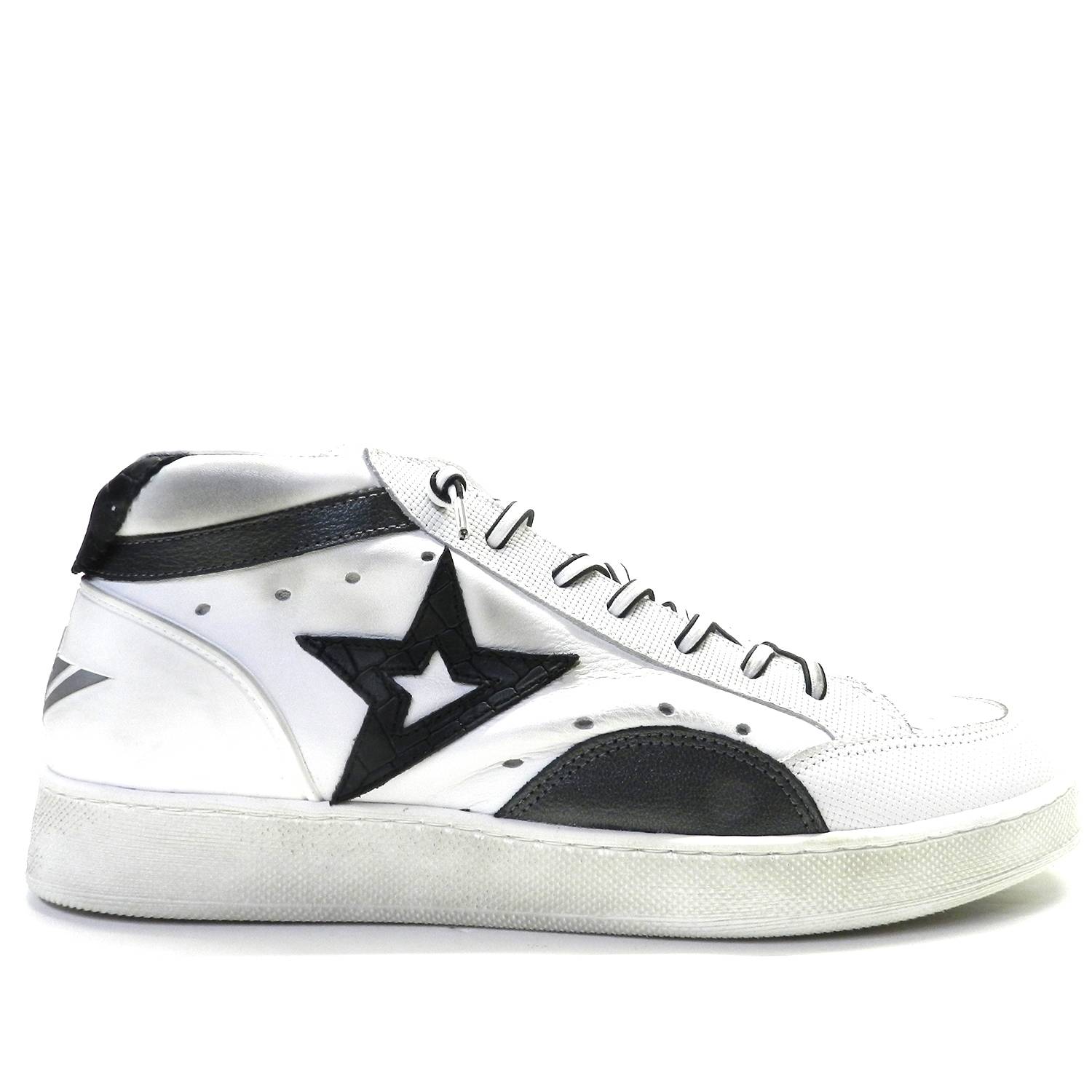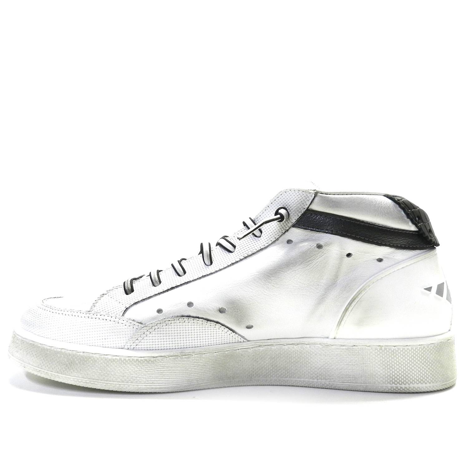 Zapatillas de la marca Cetti, modelo C-1267 en color Dirty blanco. Zapatilla deportiva semi abotinada en piel napa envejecida blanca con detalles en negro. Logotipo en lateral en negro. Suela de goma antideslizante de 2 cm de altura y cierre con cordones ajustables.