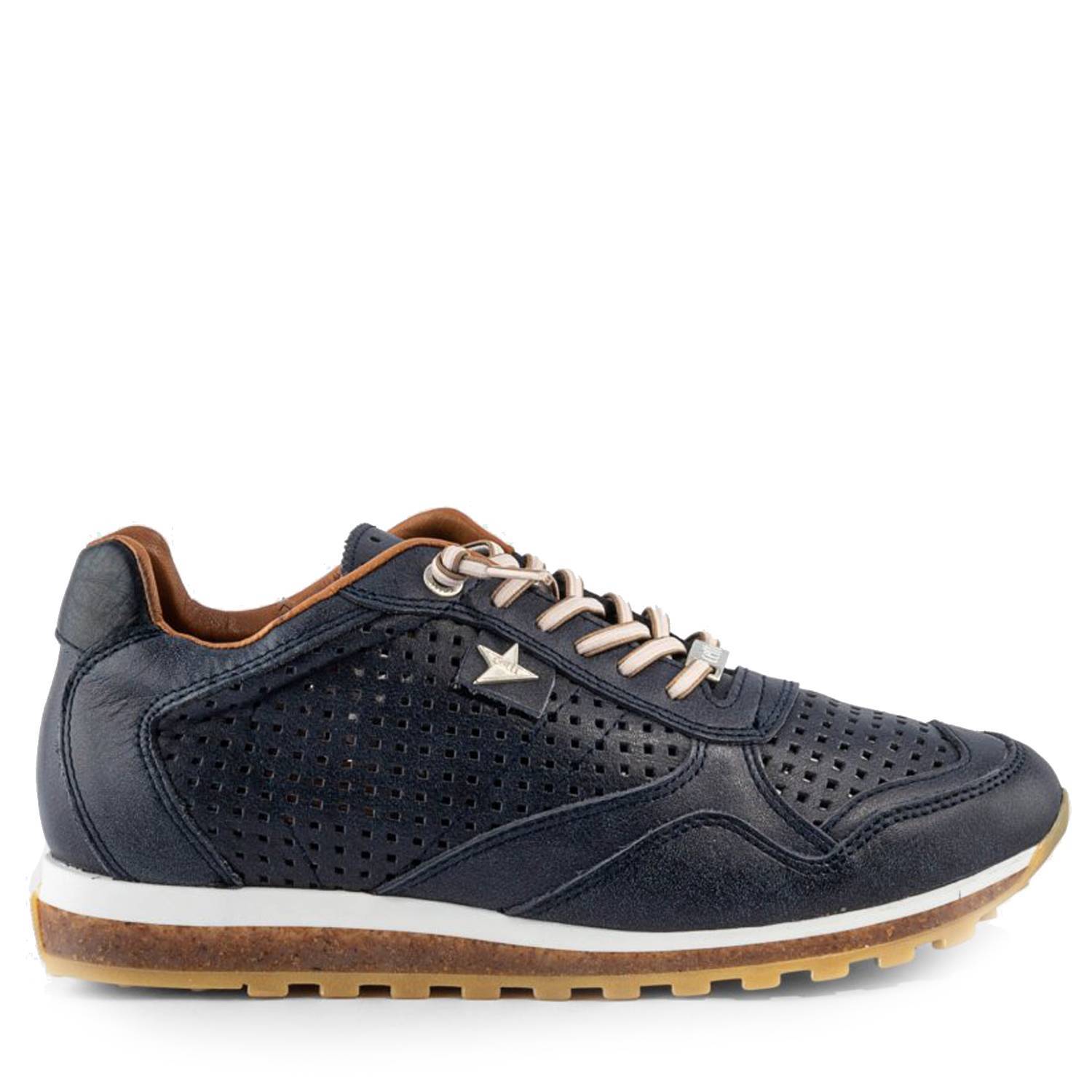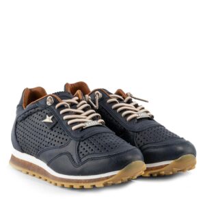 Zapatillas de la marca Cetti, modelo Sweet Off en color azul. Zapatillas deportivas elaboradas en piel troquelada en color azul oscuro. Suela plana de goma con detalle de corcho. Cierre con cordones.