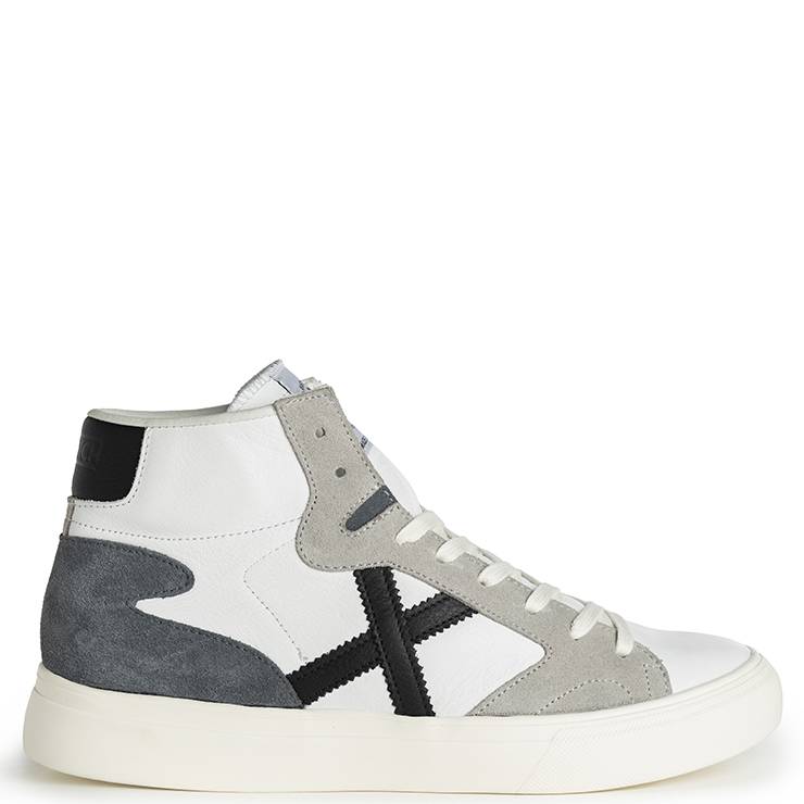 Zapatillas deportivas abotinadas elaborada en piel y ante con detalles en gris y negro. Forro textil y cierre con cordones deportivos.