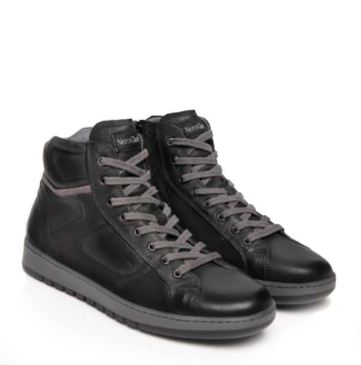 Zapatillas de la marca Nero Giardini modelo I202550U en color negro. Zapatillas deportivas abotinadas en piel napa. Cierre con cordones. Plantilla DryGo! que absorbe la humedad y garantiza el confort y bienestar. Cremallera lateral interna.